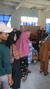 para warga antusias , untuk mendapatkan bantuan langsung tunai (BLT) bahan bakar minyak (BBM). Tidak mengenal usia, baik tua maupun muda membuat barisan barisan yang mengular panjang, di luar aula yayasan IT ya salam Kecamatan leuwisadeng Desa leuwisadeng, kamis (15/9/2022).